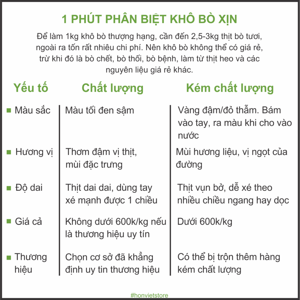 Phân biệt bằng giá cả: để thu được thành phẩm là 1kg bò khô chúng ta cần 3kg bò tươi, giá bò tươi ở thị trường dao động từ 250.000-270.000đ/1 kg. Do đó giá bán ra 1 kg bò khô thật cũng tối thiểu là 750.000đ/ 1kg. Vì thế nếu mua được bò khô với giá 250.000-300.000đ/ 1kg thì bạn nên cẩn thận với sản phẩm này nha.